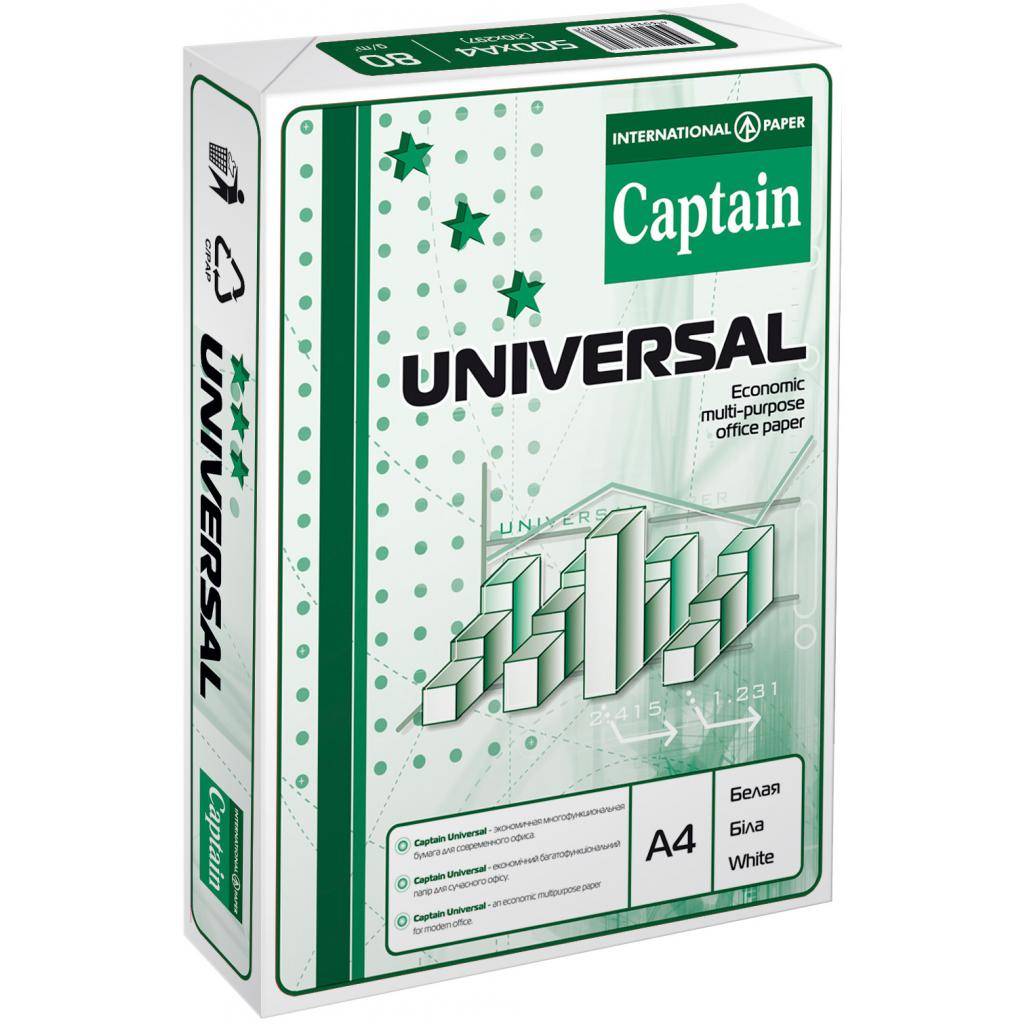 Офисная бумага Captain Universe - универсальная бумага для офисной техники, гарантирует базовое качество печати и копирования документов и является самым популярным выбором для ежедневной работы. Влагостойкая упаковка, максимальное качество печати.